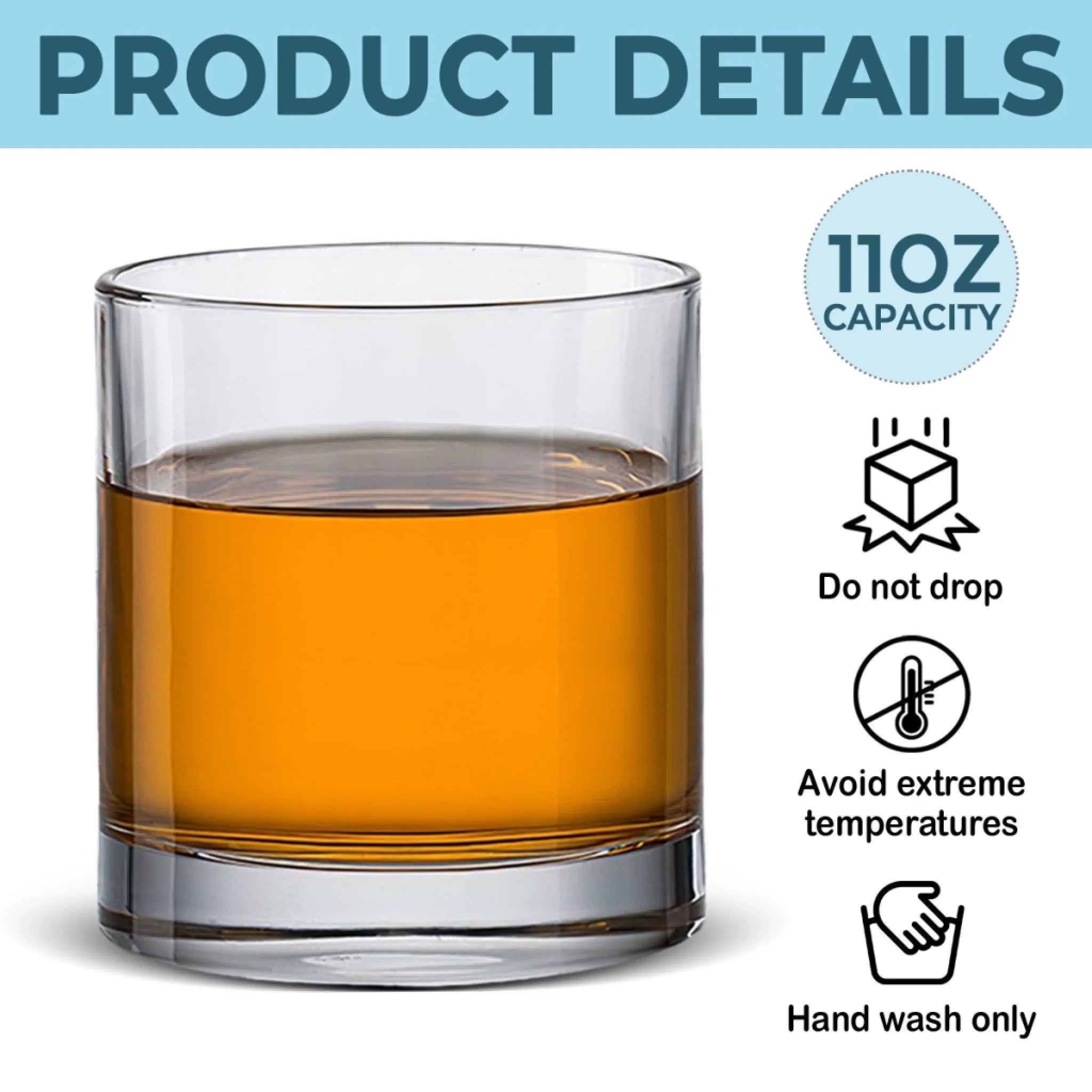 Durable glass construction is ideal for whiskey, cocktails, or any cold beverage.