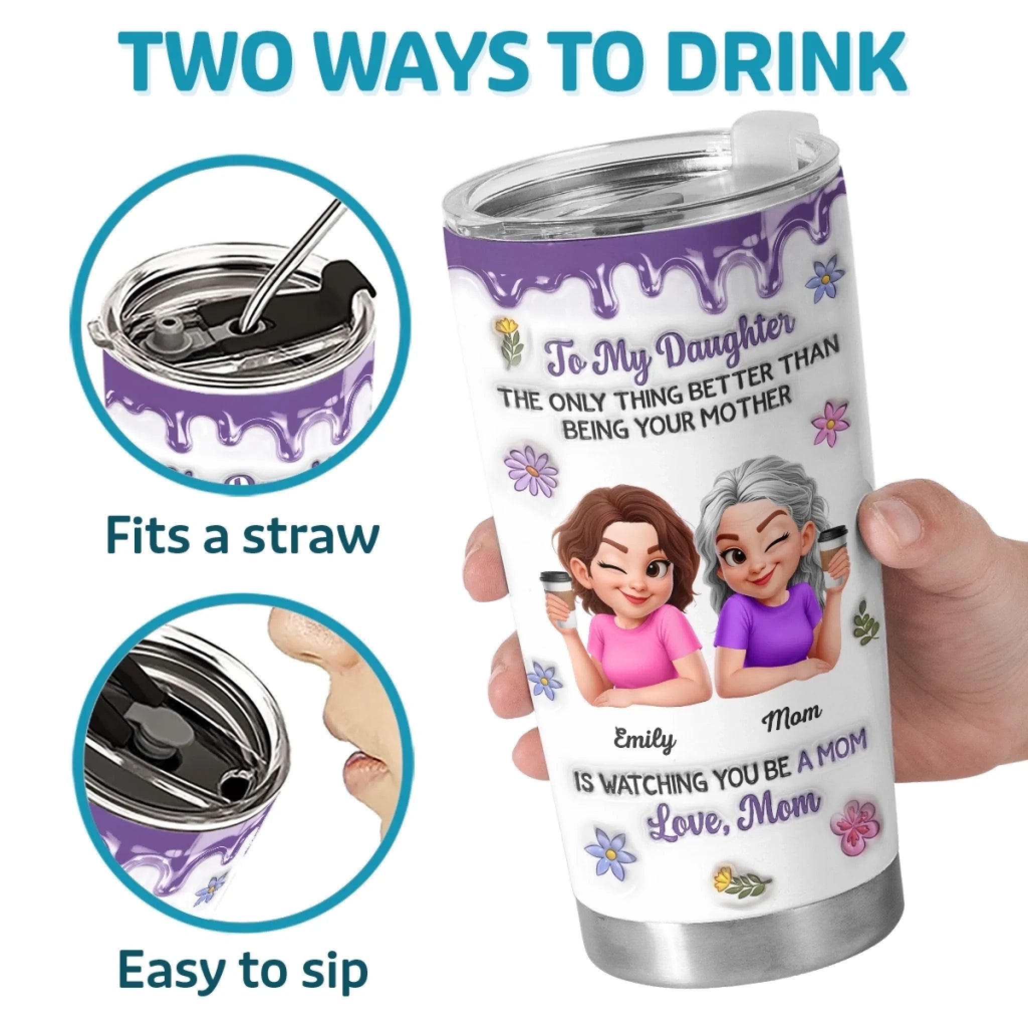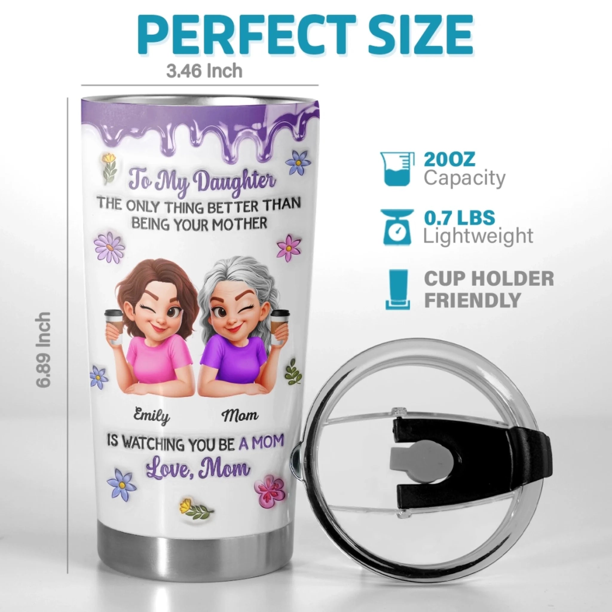 Custom 3D Inflated Effect Printed Tumbler - Personalized Mother's Day Birthday Gifts For Mom, Daughter - First My Daughter, Now A Mom
