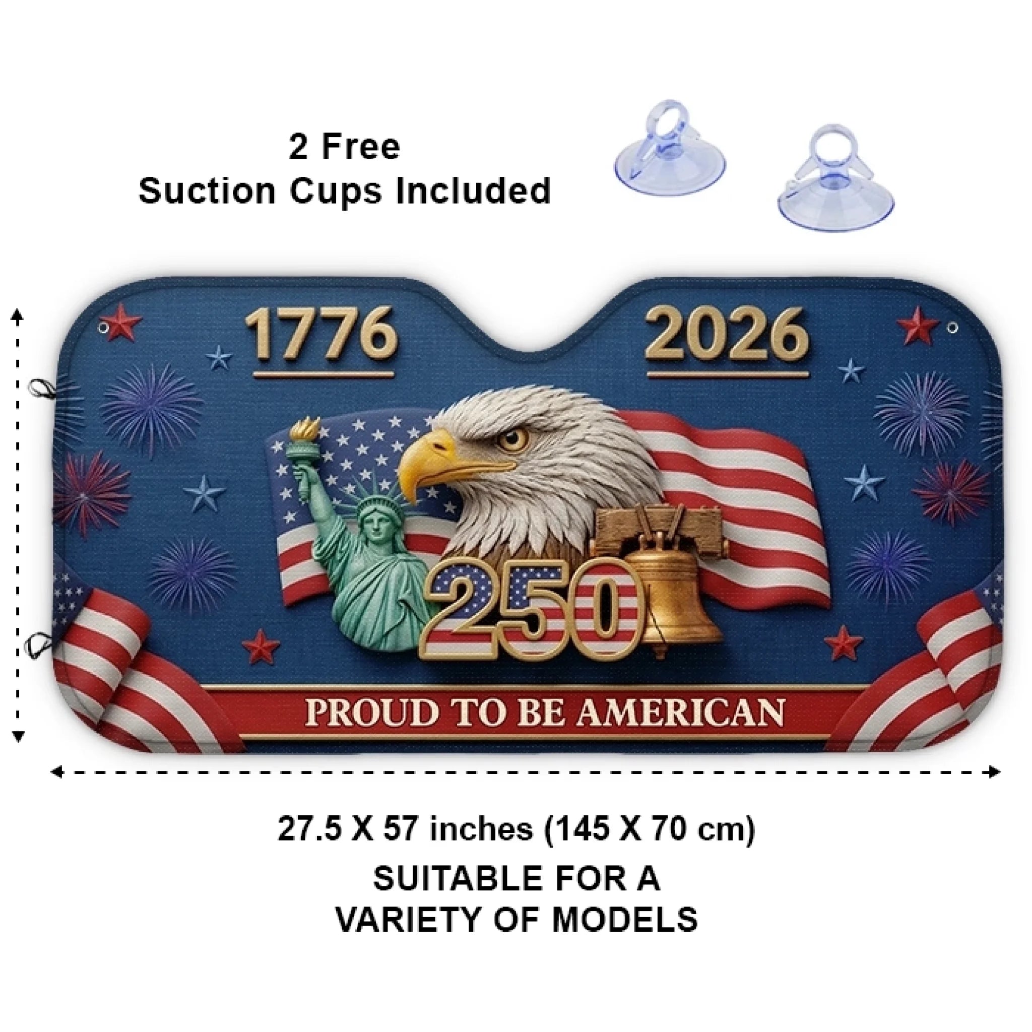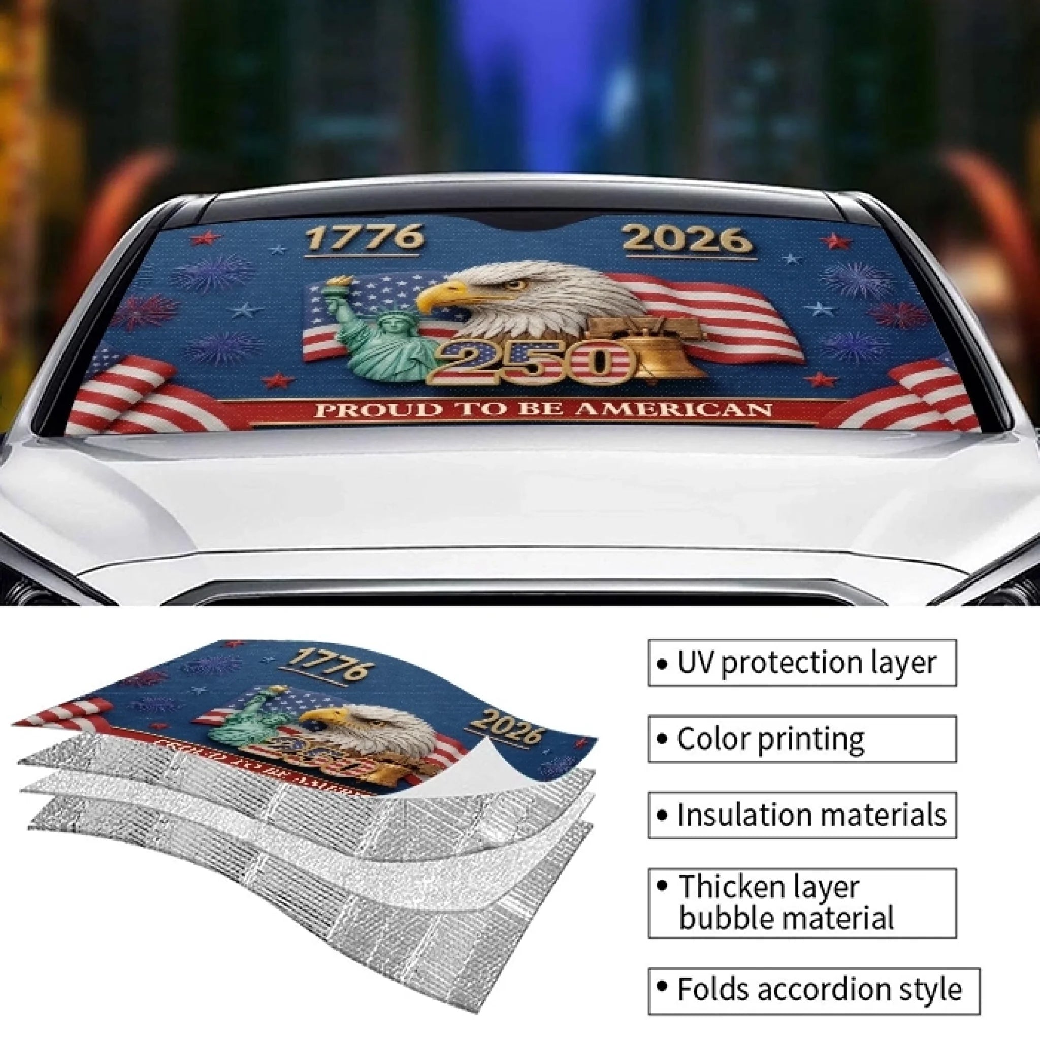 Custom Auto Windshield Sunshade, Car Window Protector - Personalized America 250th Anniversary Gifts For Women, Men - Land Of The Free