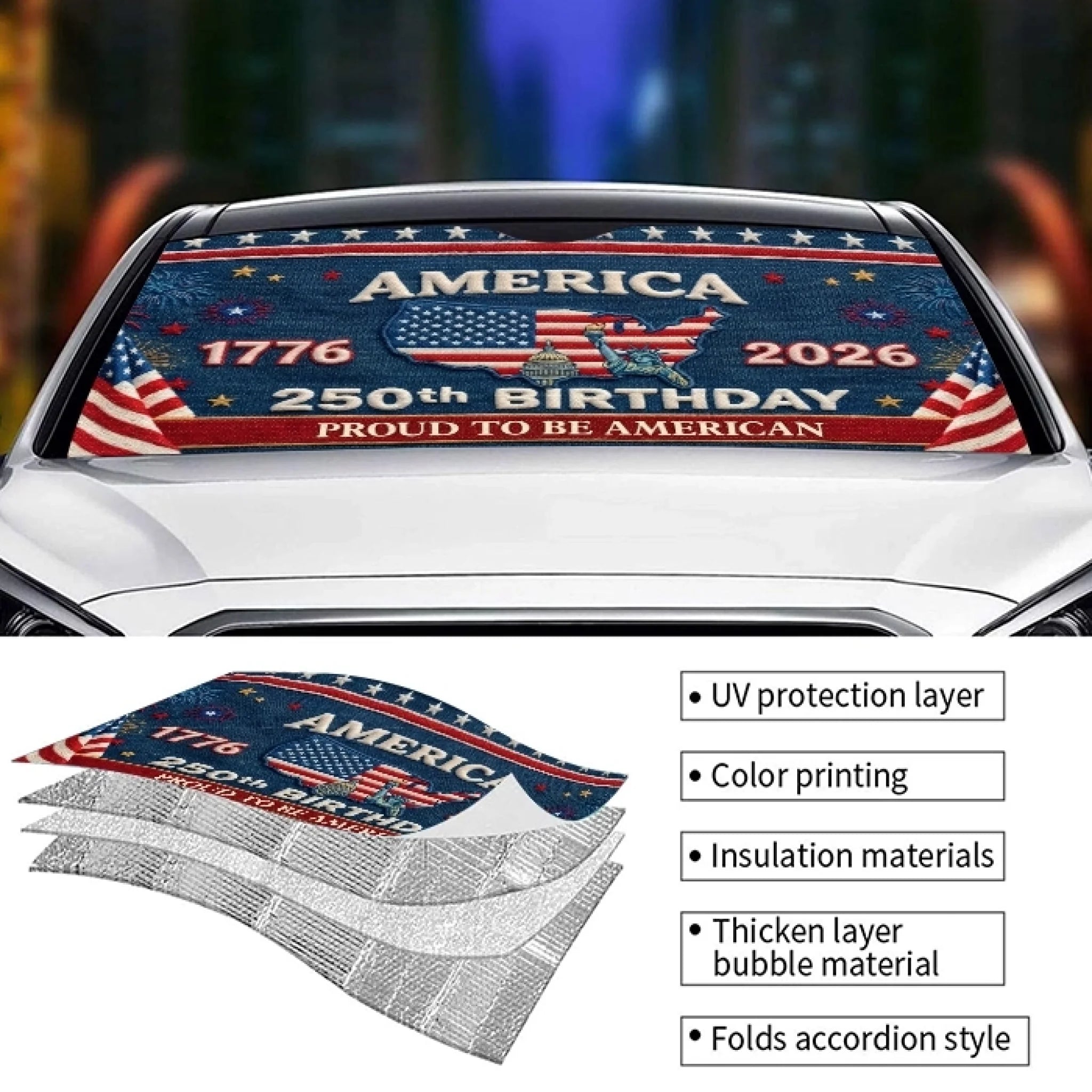 Custom Auto Windshield Sunshade, Car Window Protector - Personalized America 250th Anniversary Gifts For Women, Men - One Nation, Endless Pride