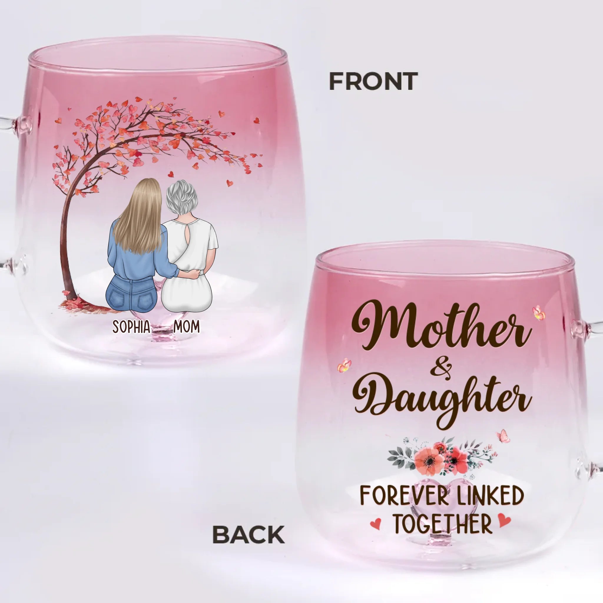 Custom Gradient Glass Mug - Personalized Mother's Day Birthday Gifts For Mom, Daughter - Connected By Heart, Not Distance