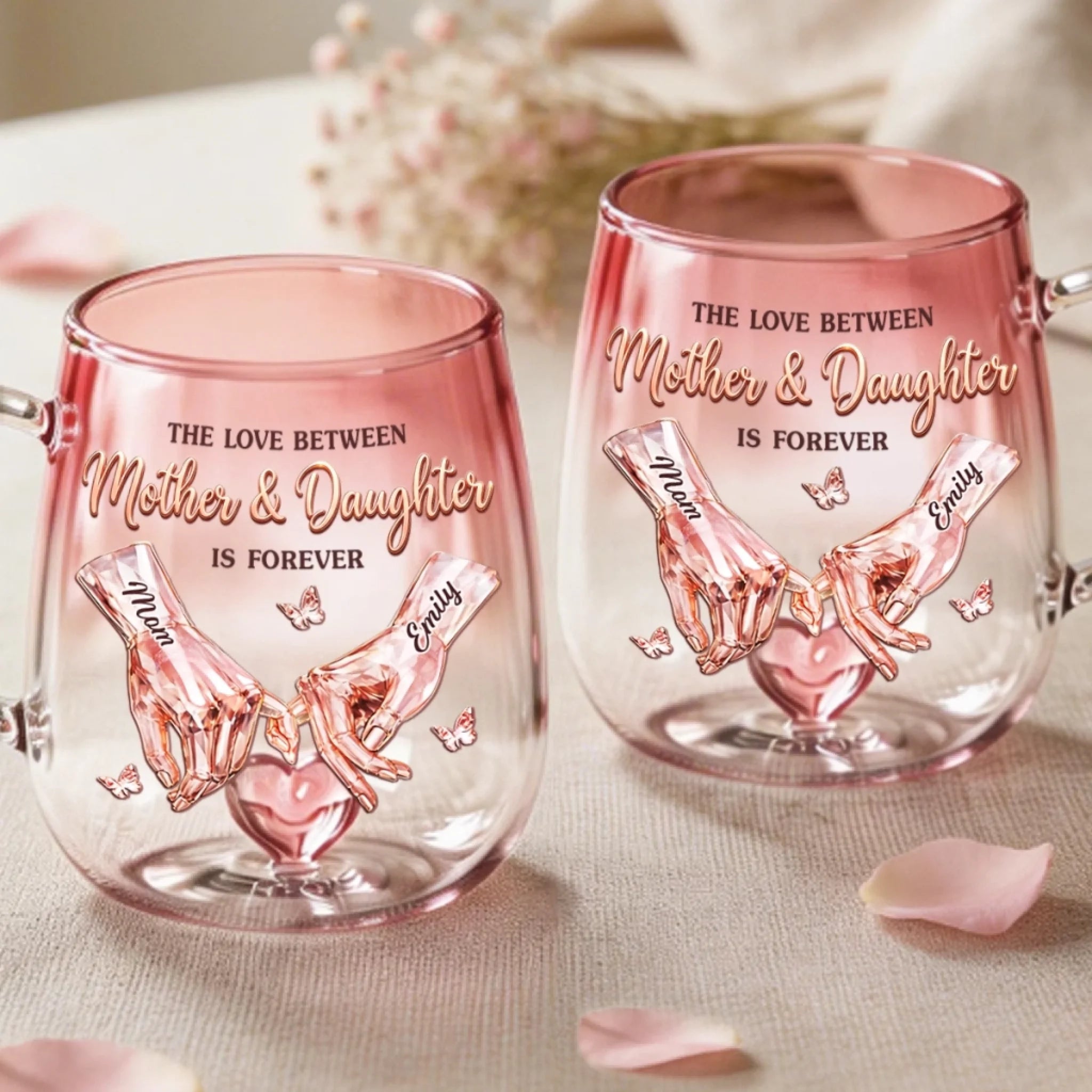 Custom Gradient Glass Mug - Personalized Mother's Day Birthday Gifts For Mom, Daughter - Pinky Promise For Life