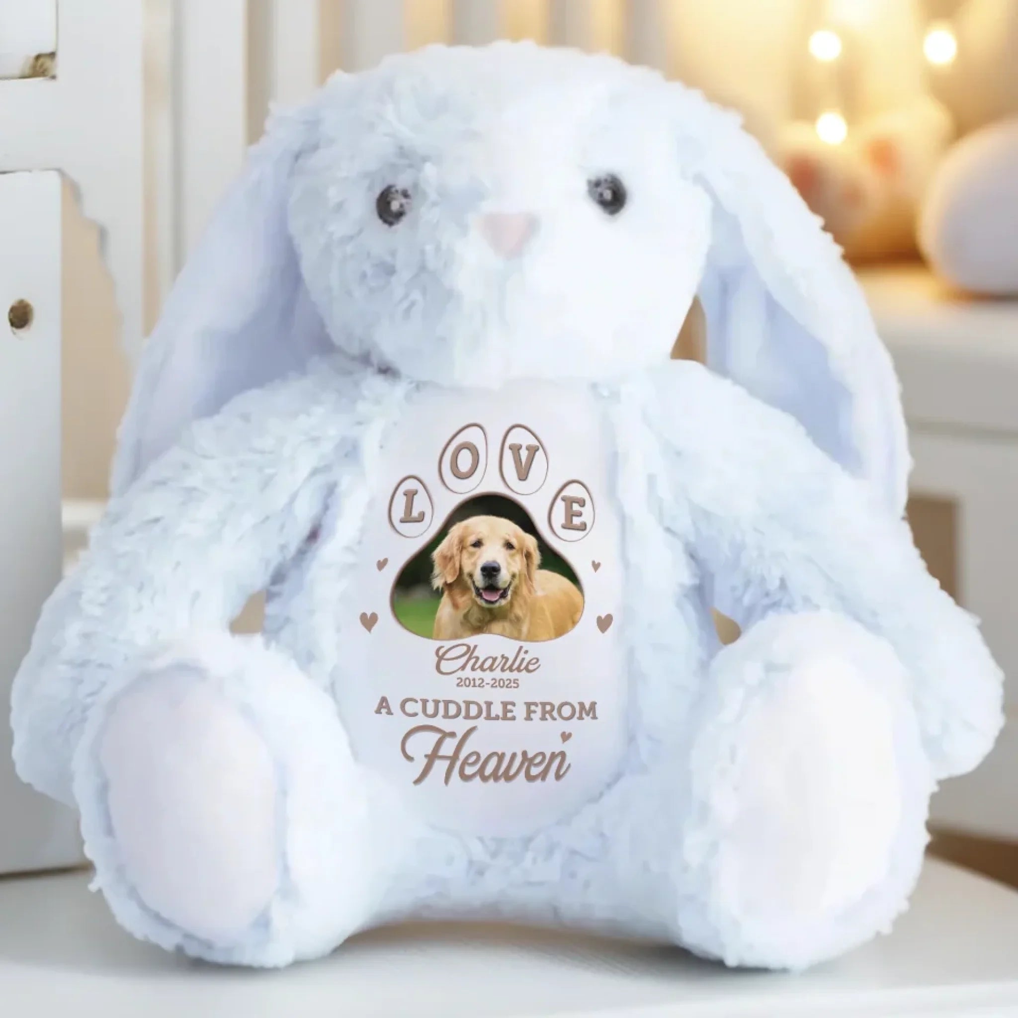This adorable bunny plush is more than just a cuddly toy, it’s also a charming keepsake and a delightful decorative piece. With its classic rabbit design and irresistibly soft feel, it brings warmth and a sentimental touch. Whether placed anywhere in your home, this bunny adds a timeless charm that makes every moment extra special. This is the perfect gift for anyone, suitable for all occasions: birthdays, holidays, anniversaries, graduations, Valentine's Day, Mother's Day, Father's Day, and just because! Whether for friends, family, or that special someone, this versatile gift is guaranteed to bring joy and make lasting memories.