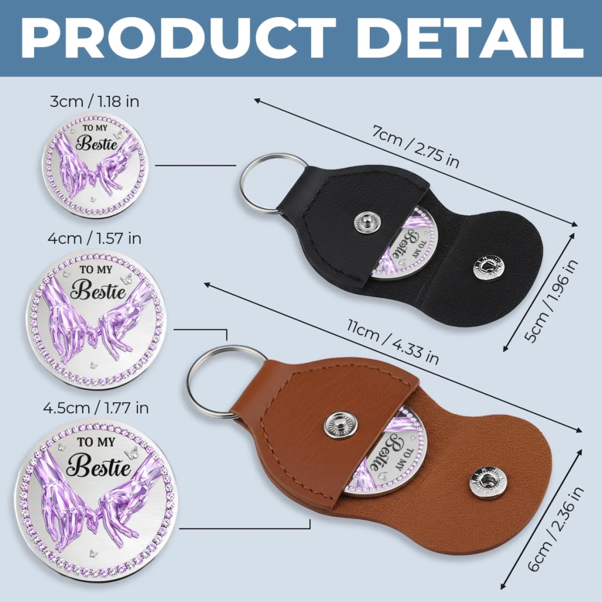 • PU Leather: 1.96x2.75 in (5x7 cm).