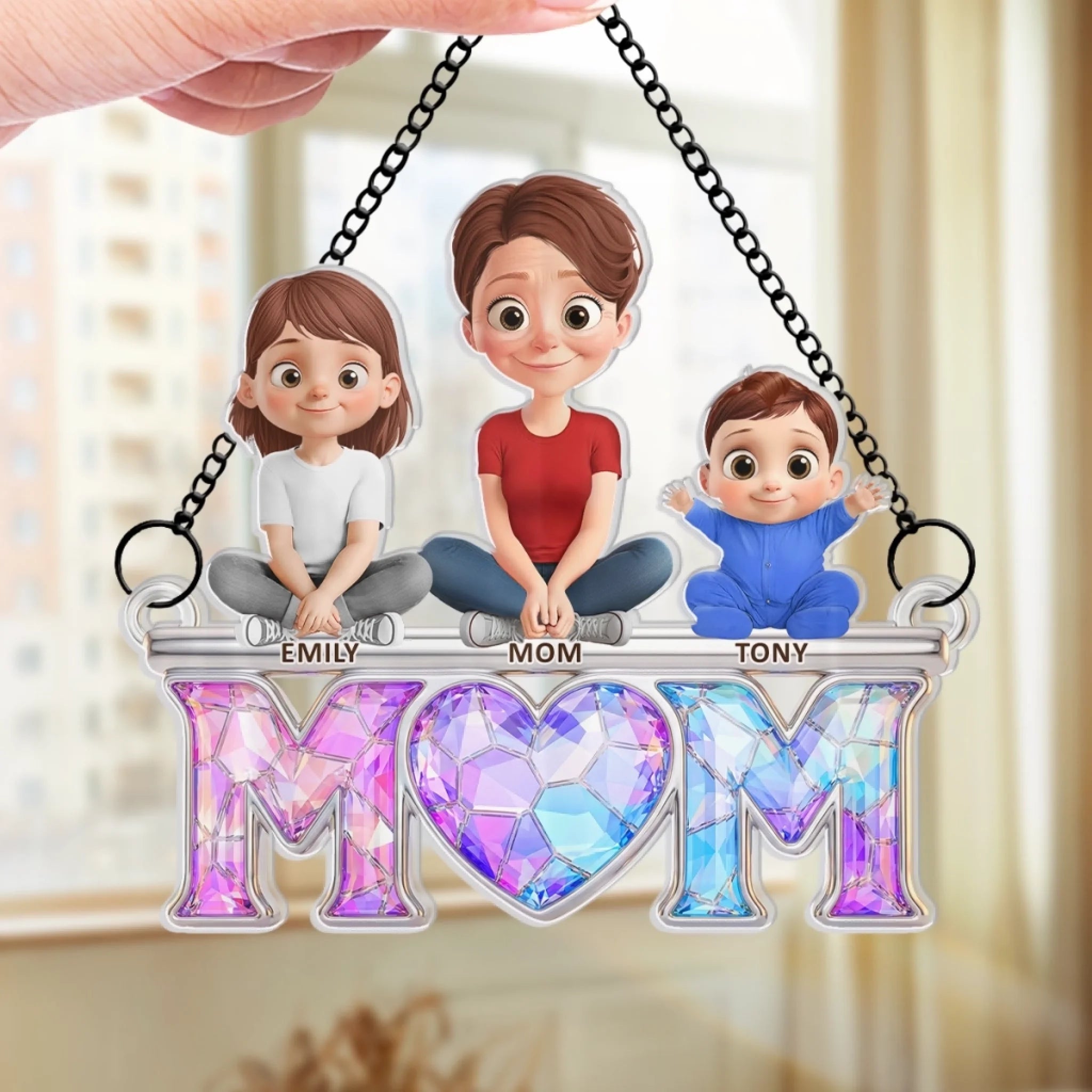 Custom Window Hanging Suncatcher Ornament - Personalized Mother's Day Birthday Gifts For Mom, Grandma - Mom Holds It All Together