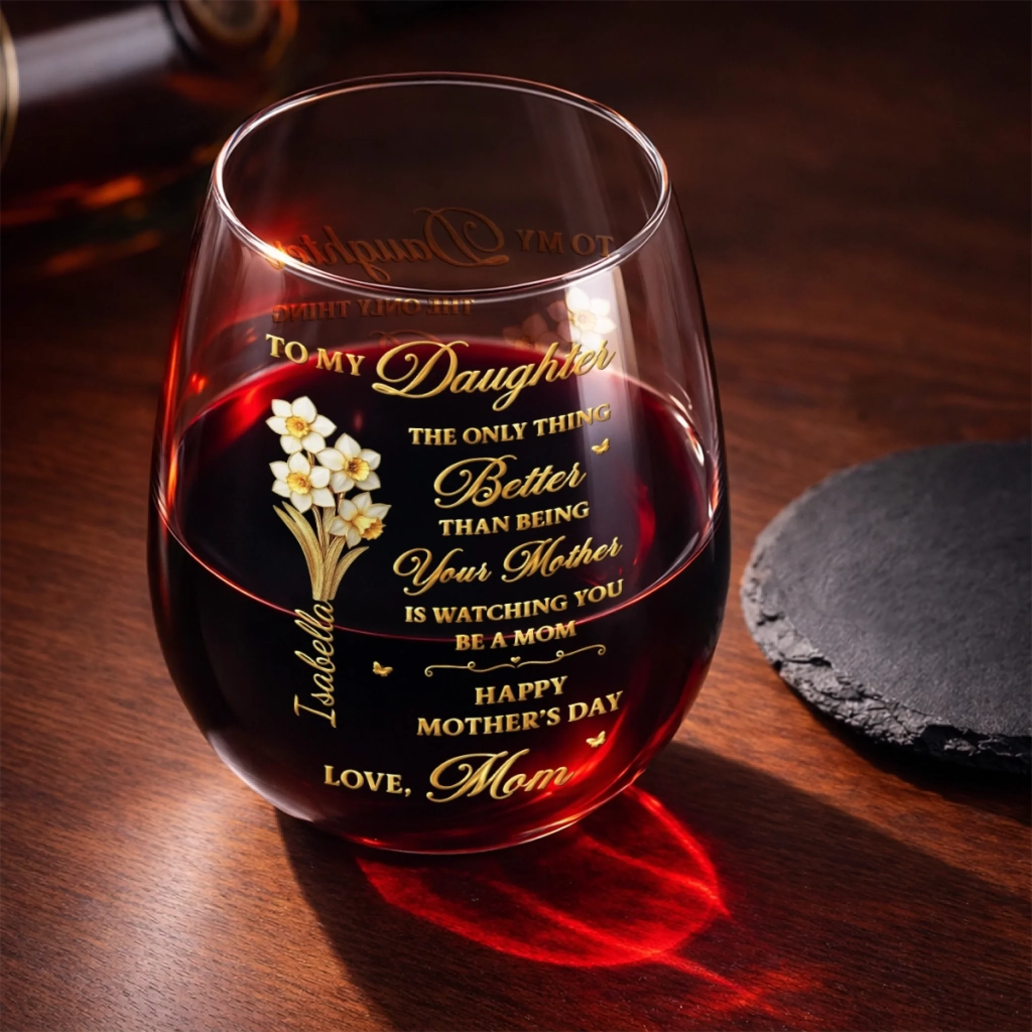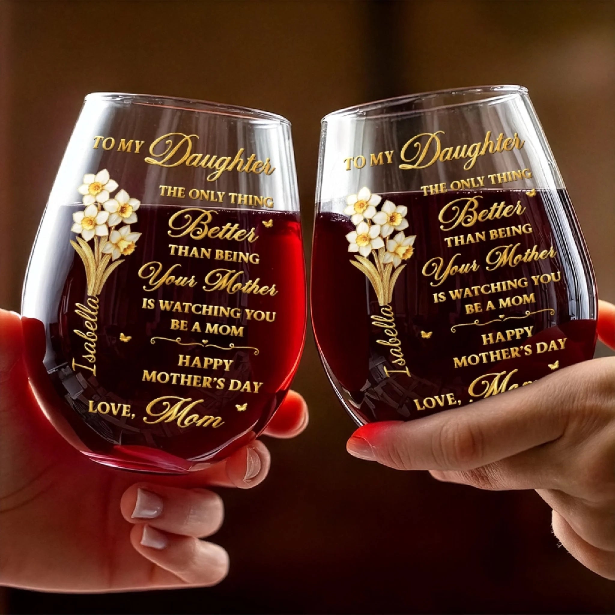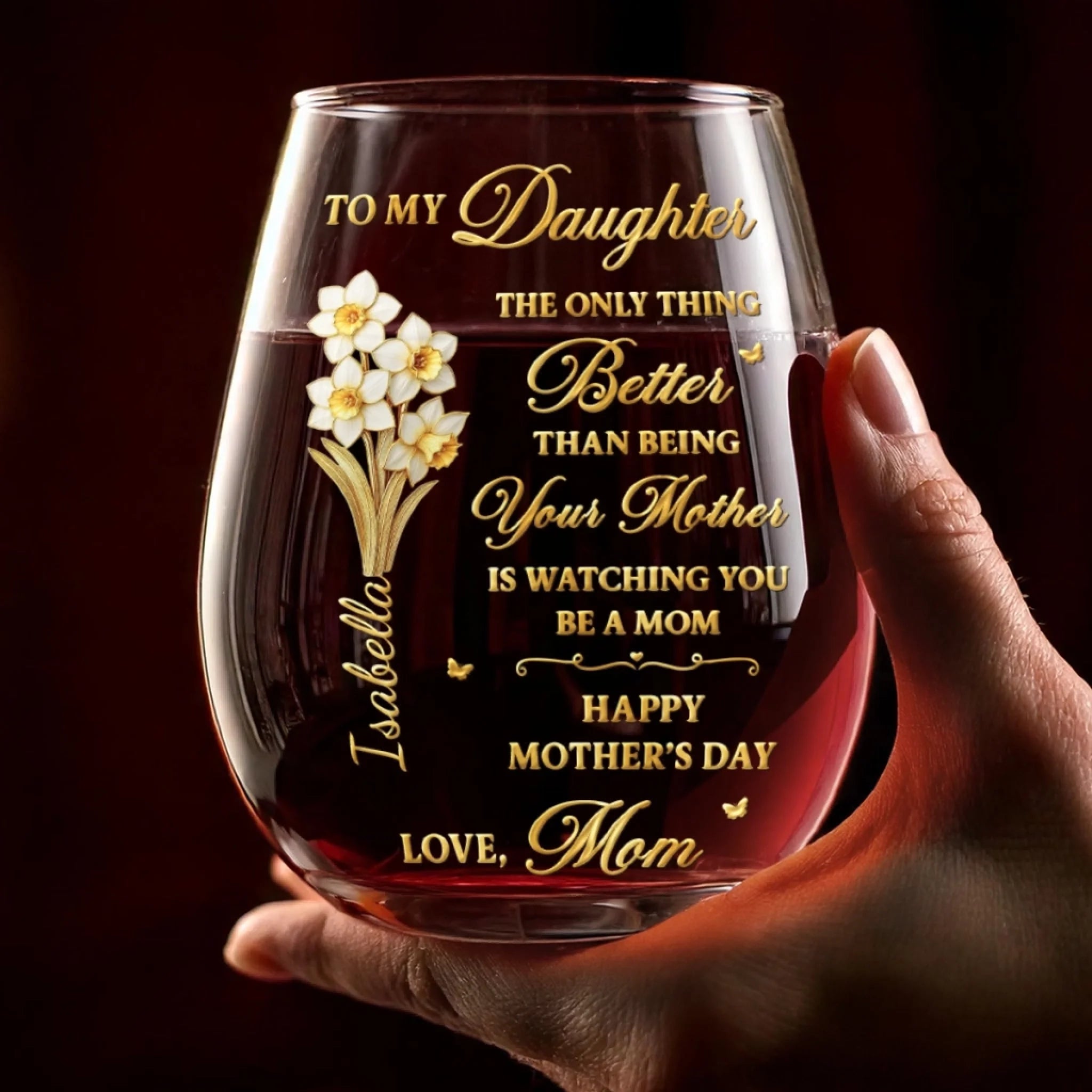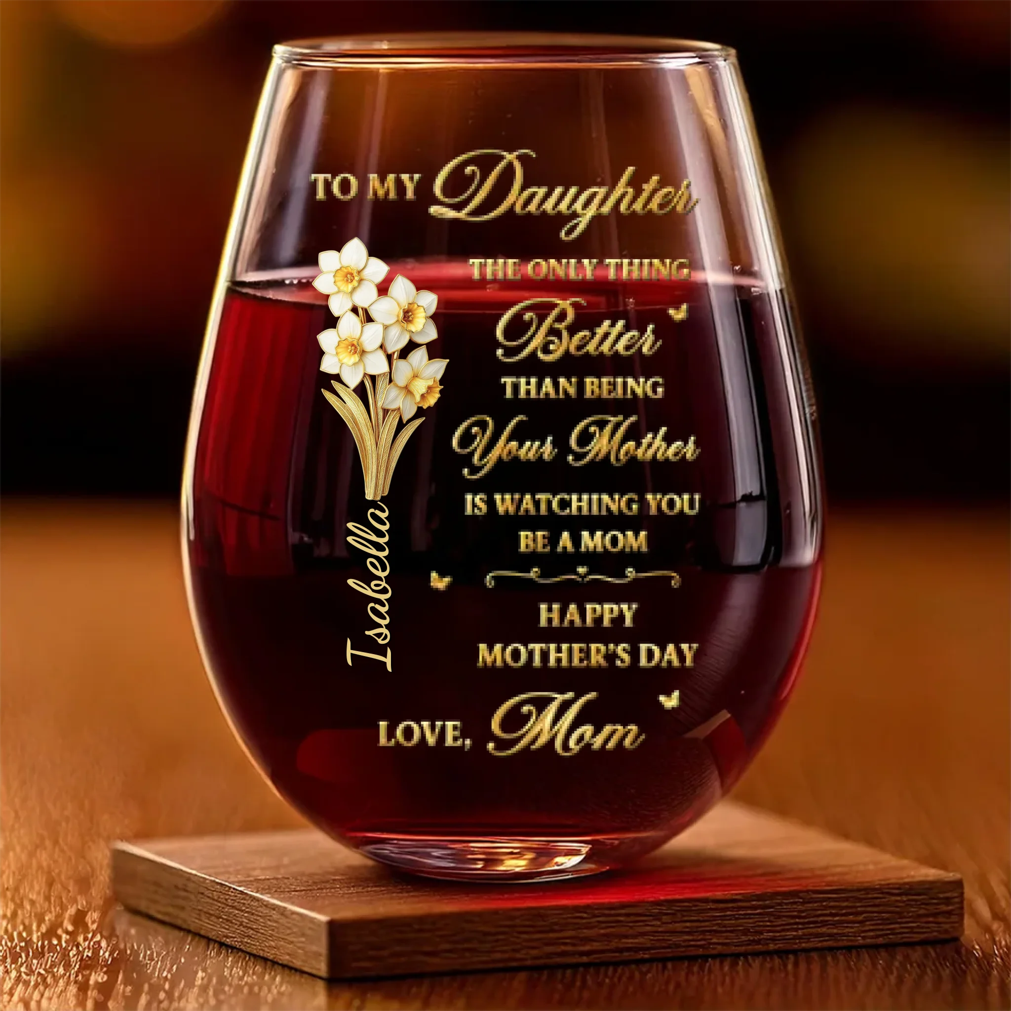 Custom Wine Glass - Personalized Mother's Day Birthday Gifts For Daughter - A Mother’s Proud Moment