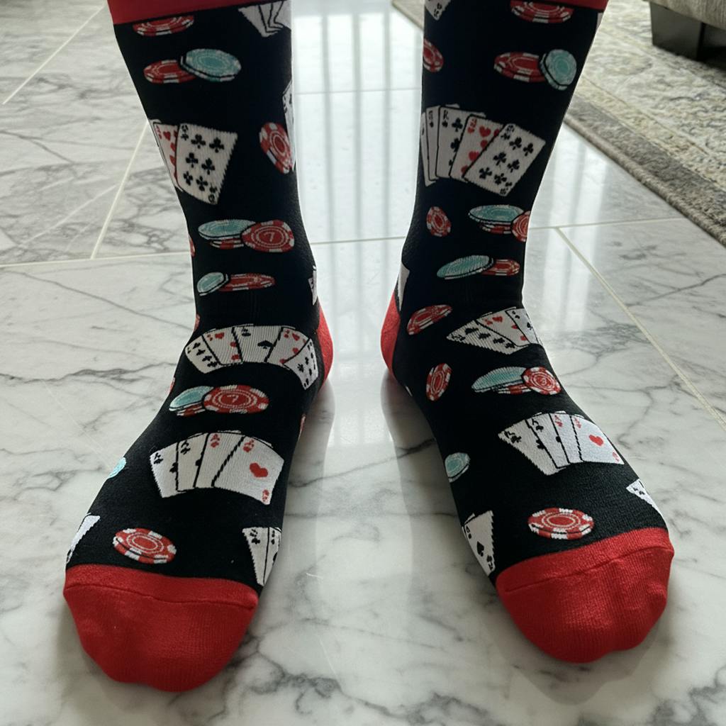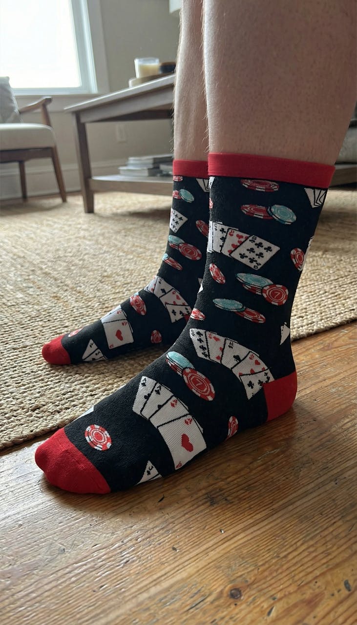 I ordered these socks for my brother who hosts poker night every Friday and he burst out laughing when he opened them. The colors and cards design look awesome.