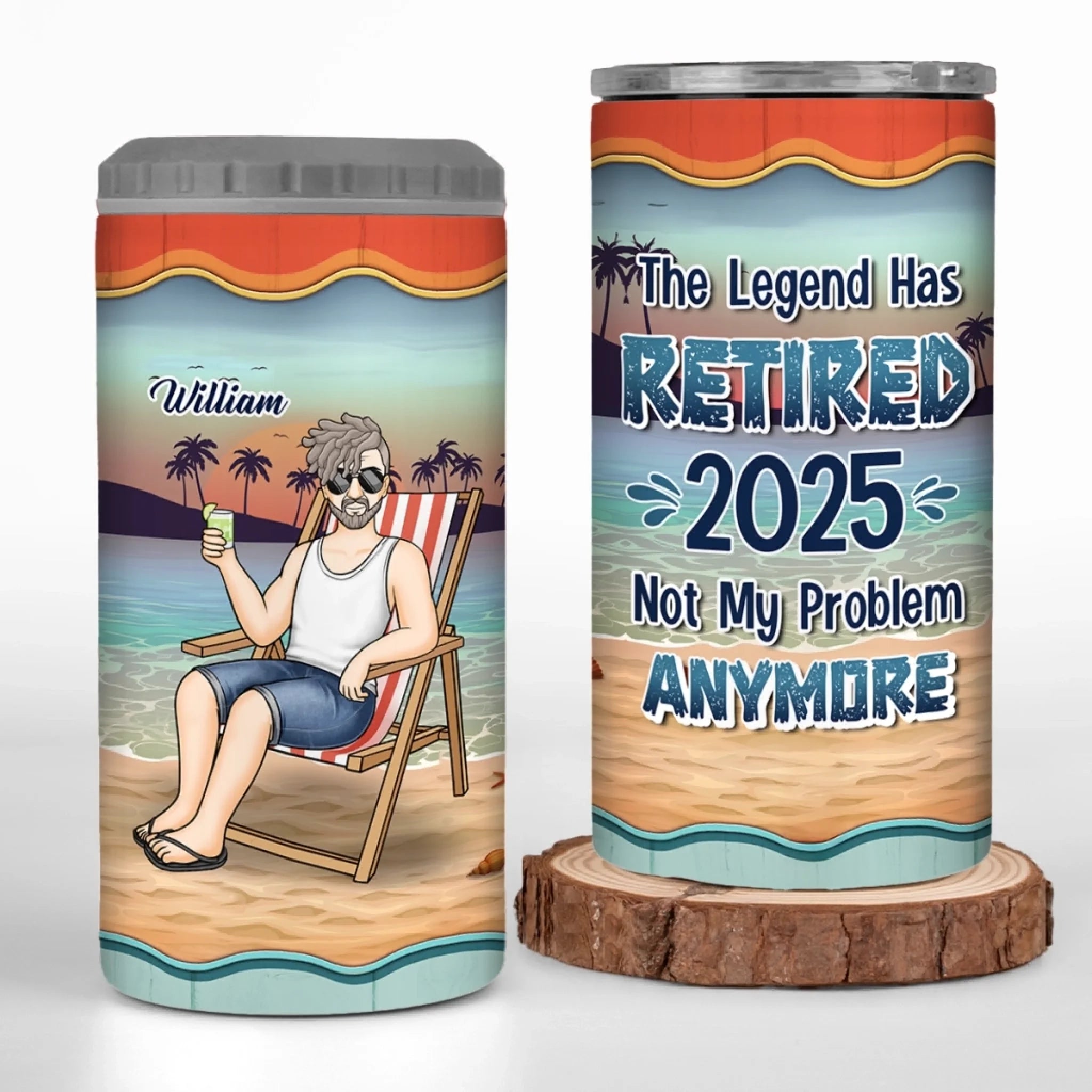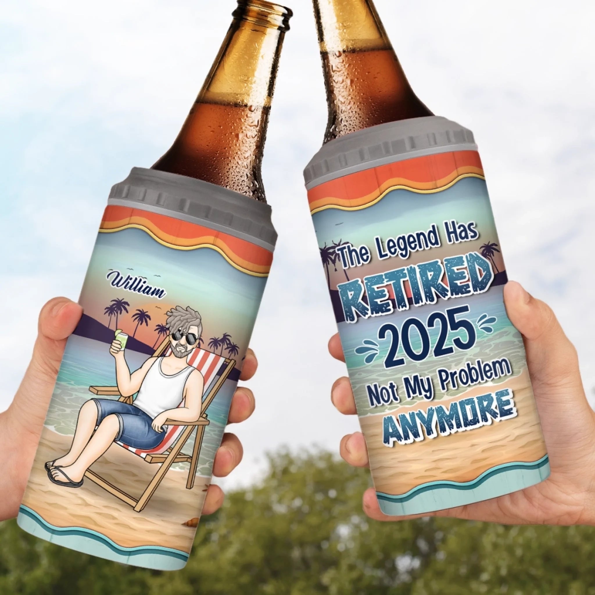 Custom 4 In 1 Can Cooler Tumbler - Personalized Retirement Gifts For Women, Men - Goodbye Tension, Hello Pension