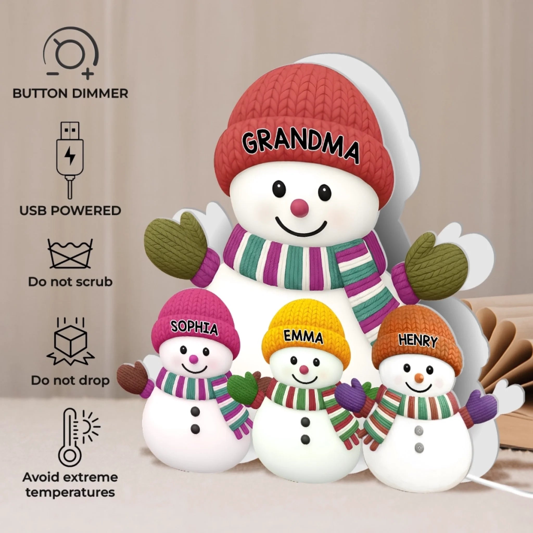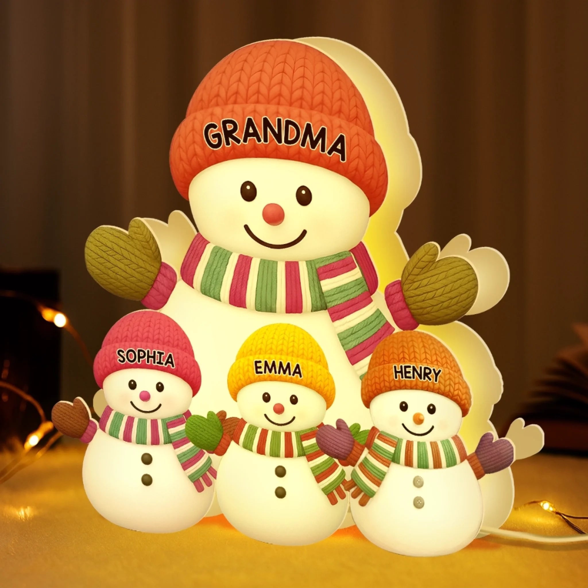 Custom Snowman Shaped Light Box - Personalized Christmas Birthday Gifts For Grandpa, Grandma - A Snowman Family Full Of Joy